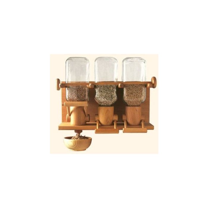 Mooi ontworpen graanhouder in beukenhout en glas.